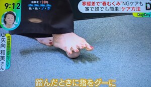 実際に住岡アナウンサーに「距骨調整」を体験していただき、